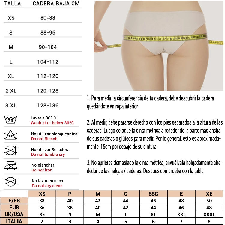 • No usar lejía, secadora ni plancha.