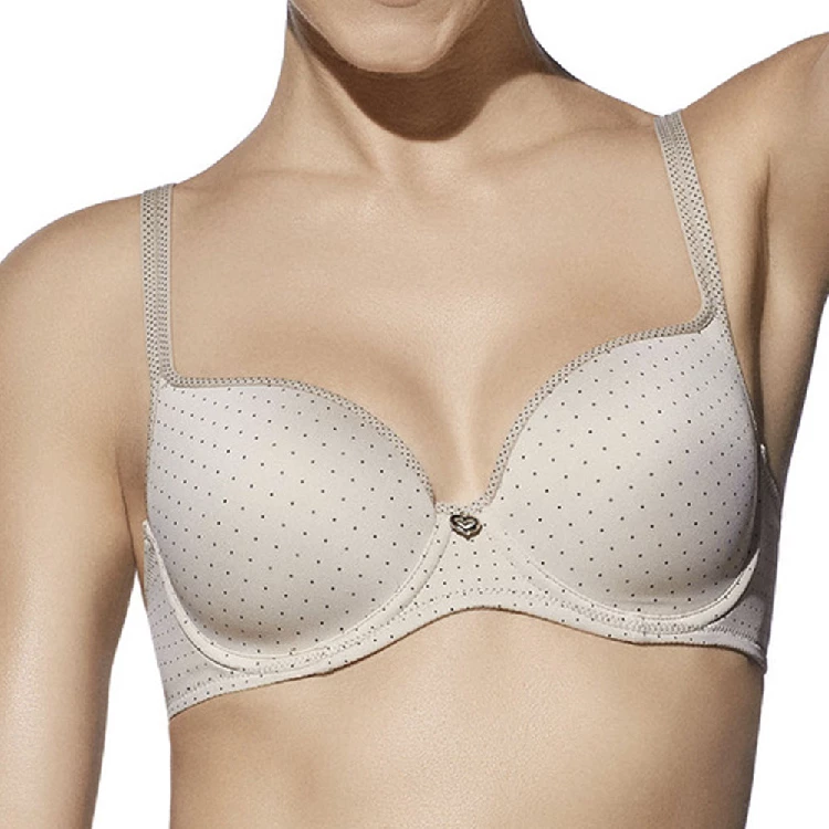 Diseñado para todo tipo de pecho y para cualquier edad, el sujetador Francesca destaca por su equilibrio entre funcionalidad y estética. Su estampado de puntos le aporta un toque juvenil y actual, ideal tanto para el día a día como para ocasiones en las que quieres sentirte cómoda y segura. Los tirantes finos y regulables facilitan un ajuste personalizado, adaptándose perfectamente a la silueta y garantizando una sujeción óptima durante toda la jornada.